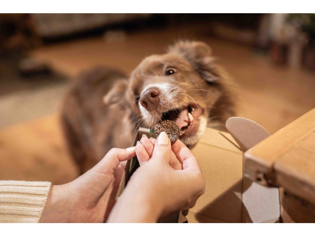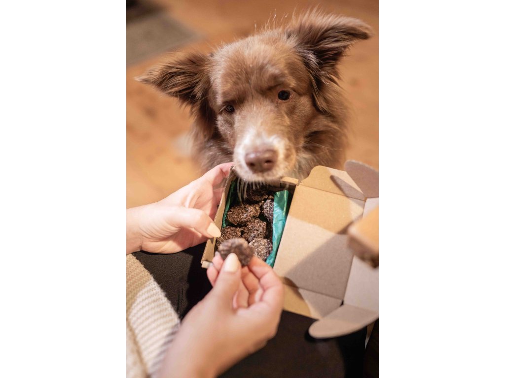 Pečlivě balené v luxusní krabičce s hedvábným papírem – ideální pod stromeček. Dopřejte svému psovi zdravý a chutný pamlsek.
