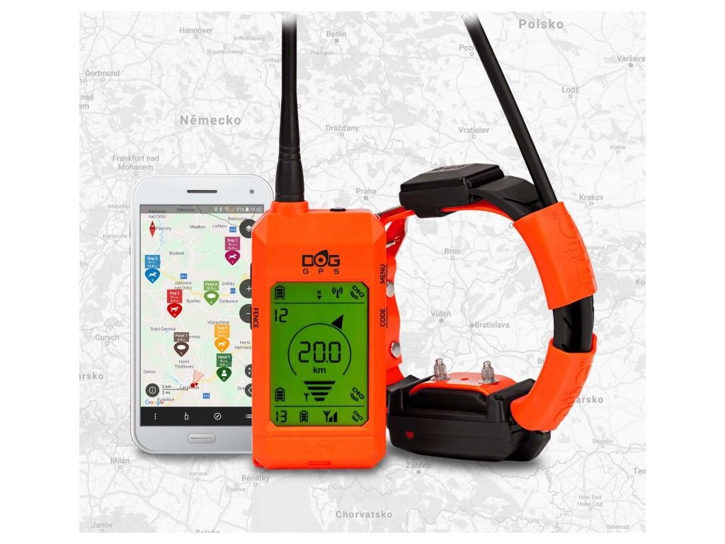 Dosah až 20 km mezi obojkem a přijímačem (v závislosti na terénu)