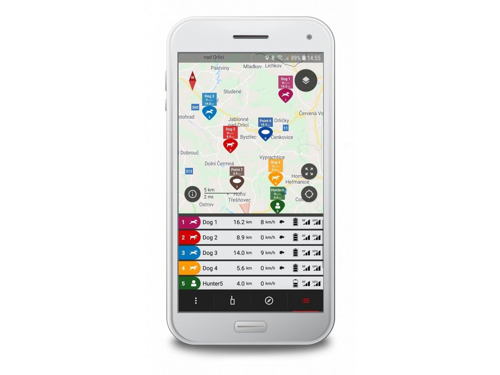 Kompatibilita s aplikací Dogtrace GPS (Android) pro sledování v mapě